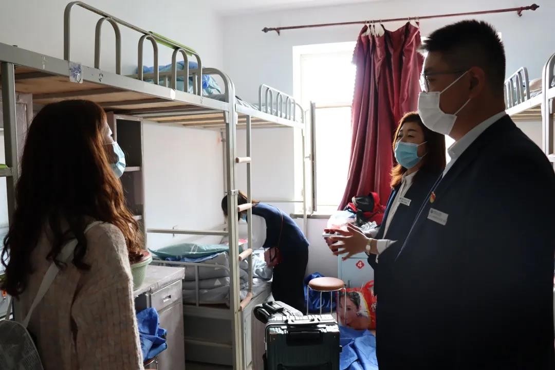 为进一步了解新生入校后的情况,帮助新同学更快融入大学生活,9月23日中午,土木工程学院院长盖晓连、党总支书记宋旭、副院长于冰、副院长张佰真铭、综合办公室主任焦君海等学院领导和老师深入学生宿舍,看望慰问刚刚报到入住寝室的2020级新同学,送去学院对新同学的慰问和关心。