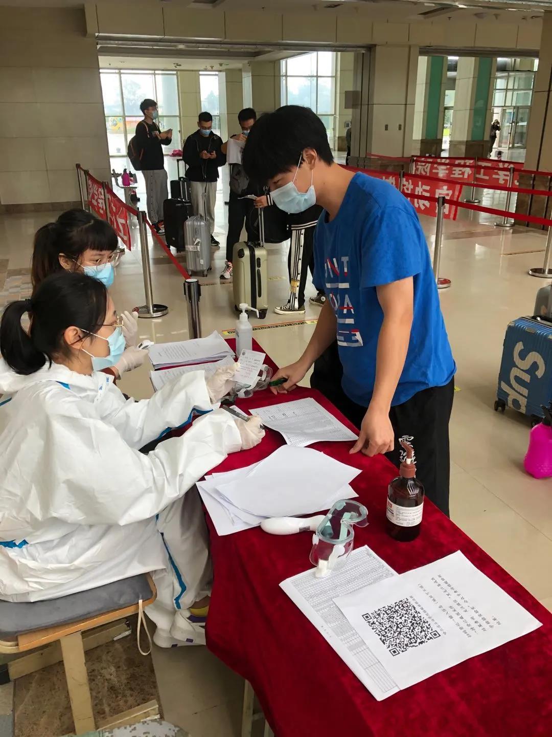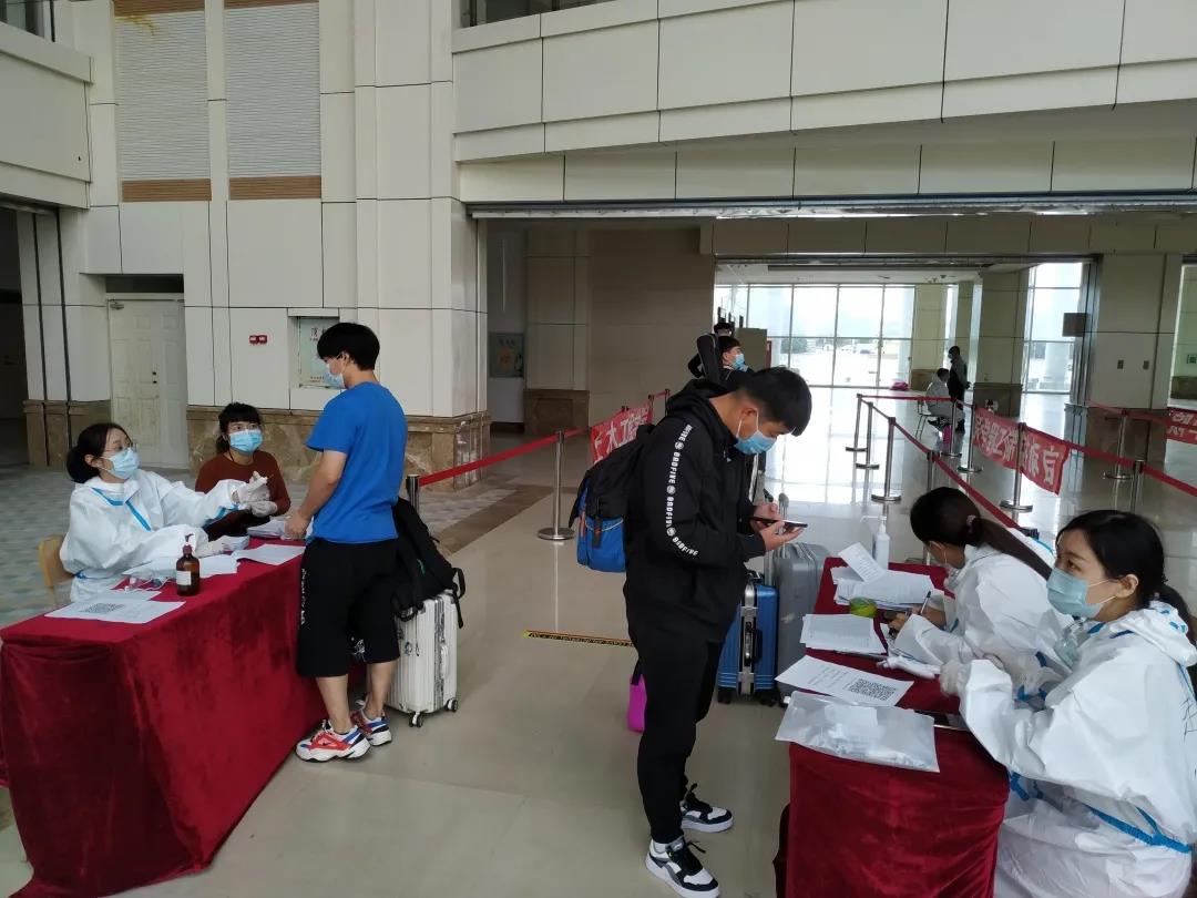 9月4日早4点多,学院书记和辅导员到校开始布置学生返校登记场地。早6点,顺利开始迎接第一名返校的学生,大家认真引导学生扫描、测温、为学生物品做消毒、指引学生有序进行核酸检测,乘坐校车返回宿舍,并反复叮嘱学生带好口罩,做好防护,少聚集。