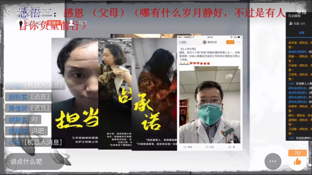 身在湖北的同学说:疫情期间让大家看到了中国人民的团结和医护人员的伟大,各地医护人员能够在武汉和湖北最困难的时候立刻驰援,各地区爱心人士能够在武汉和湖北最困难的时候立刻捐资捐物,让他们非常的感动。广大群众能够在疫情关键时刻响应国家政策万众一心“宅”于家中,在最短的时间内将疫情控制到现在这个局面,也就只有一个国家能够做到,那就是中国。