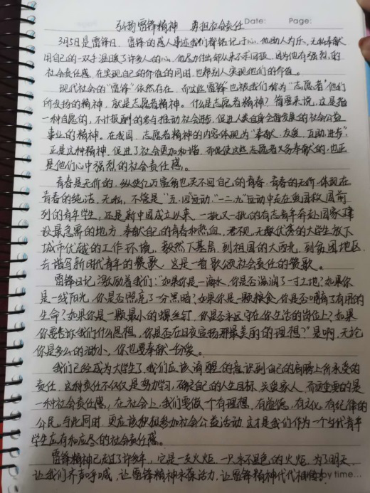 土木工程学院全体同学积极参与,踊跃投稿,同学们用自己的笔记录了个人对雷锋精神的理解。