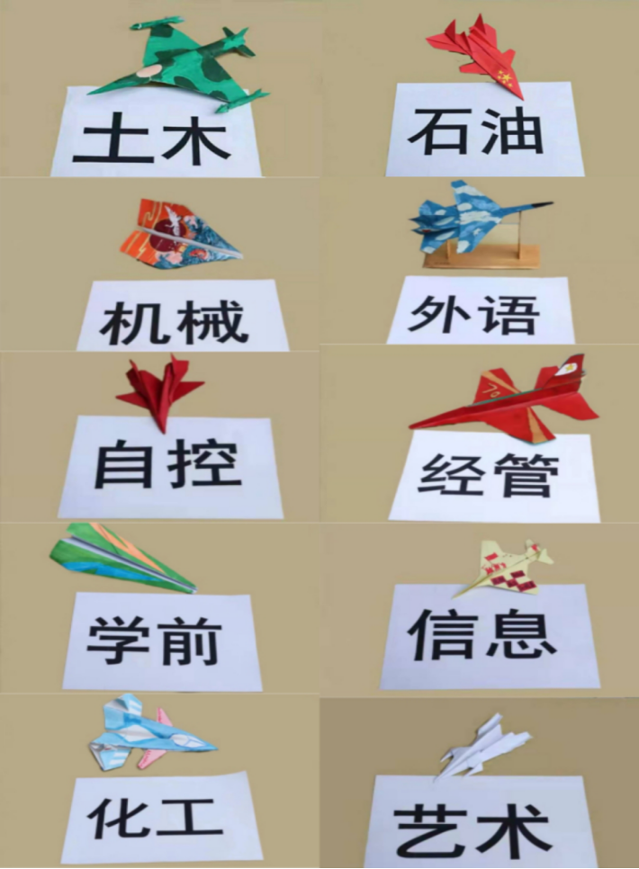 首先,由主持人宣布大赛开始及比赛规则,本次比赛共设两个环节。第一环节为审美环节,各参赛队伍提前抽签,活动现场按照抽签顺序依次对自己学院设计的纸飞机进行讲解,后由评委进行打分,记为纸飞机审美创意分。每个审美飞机通过颜料的涂抹都呈现出一种独特的美感。