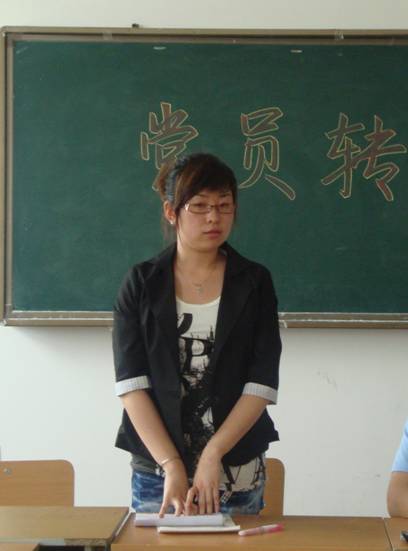 10年5月24日,教学楼511室召开徐淑媛同学转正鉴定会。会议由郭亚杰副书记主持,盖晓连老师记录,各位党员老师及同学参加会议。会上,各位老师积极发表建议,气氛融洽。最后,与会党员全票通过,支部宣布徐淑媛同学成为中共正式党员,郭亚杰书记对该同学进行总结评价,并且提出殷切希望。