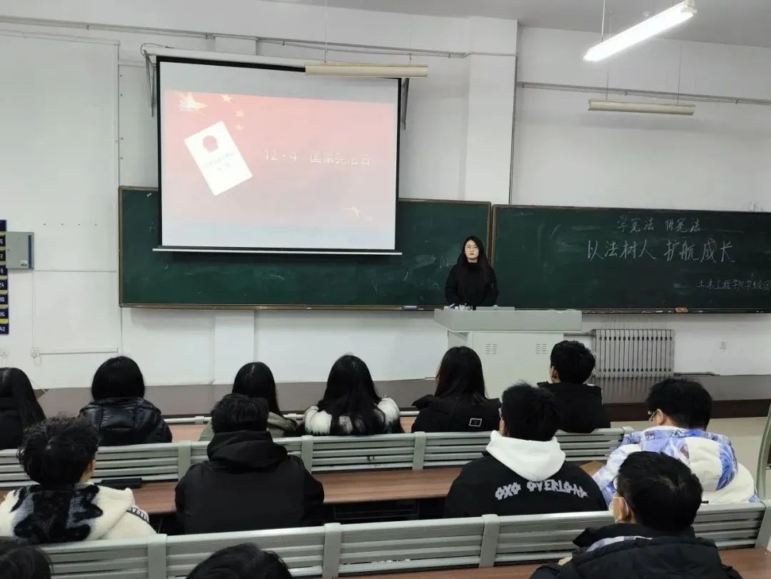 为了积极响应上级号召,弘扬宪法精神,增强法治观念,于2023年12月3日,土木工程学院学生会团支部开展以“以法树人,护航成长”为主题的团日活动。
