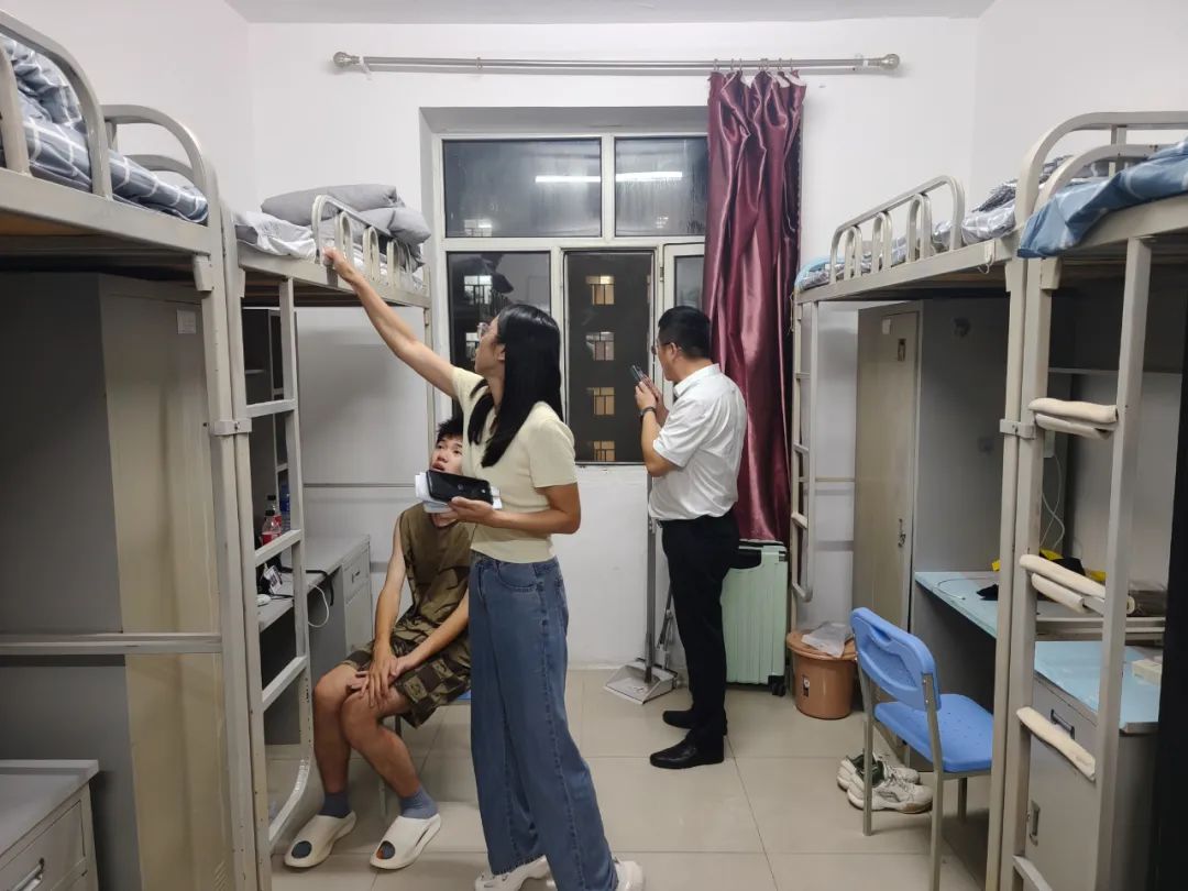 为落实学院新学期迎新工作部署,全面掌握2025级新生入住情况,筑牢宿舍安全防线,营造安全整洁的住宿环境,8月23日,人居环境学院党总支书记刘强、辅导员王铁媛、管艺濛、杨荣艺共同开展2025级新生寝室走访检查工作。