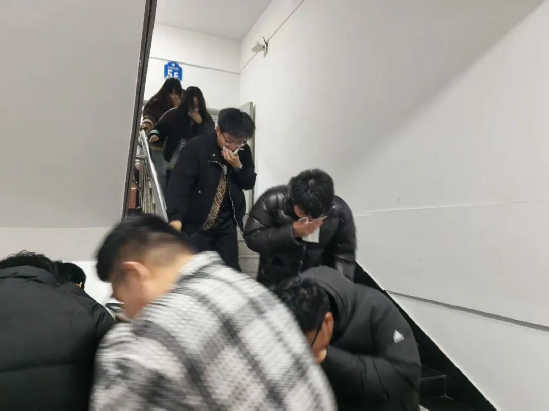 随后,学院组织进行了消防应急疏散演练。同学们迅速按照预定的疏散路线,低头、弯腰、捂住口鼻,有序地撤离到安全地带。演练过程中,各年级辅导员和安保人员密切配合,确保演练顺利进行。