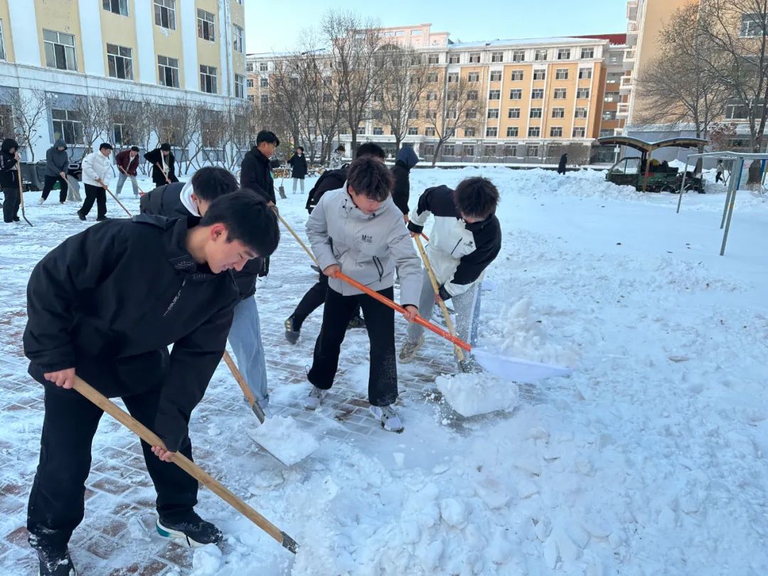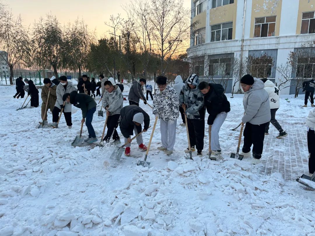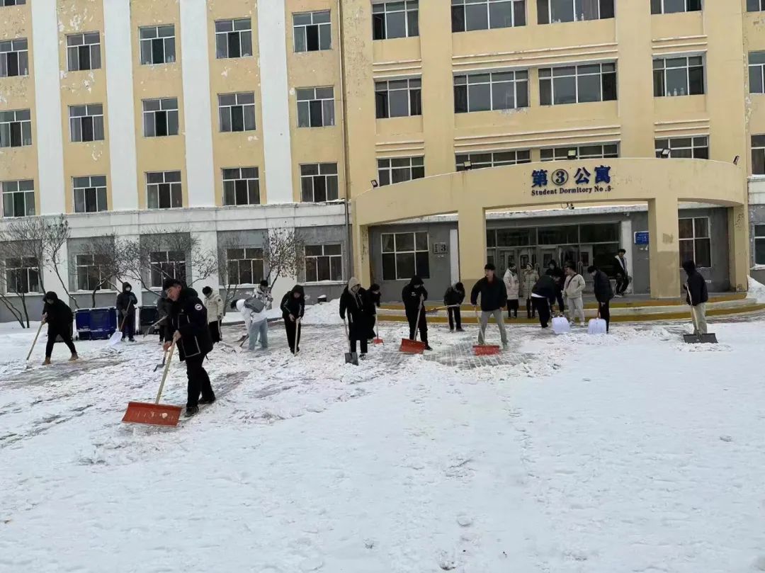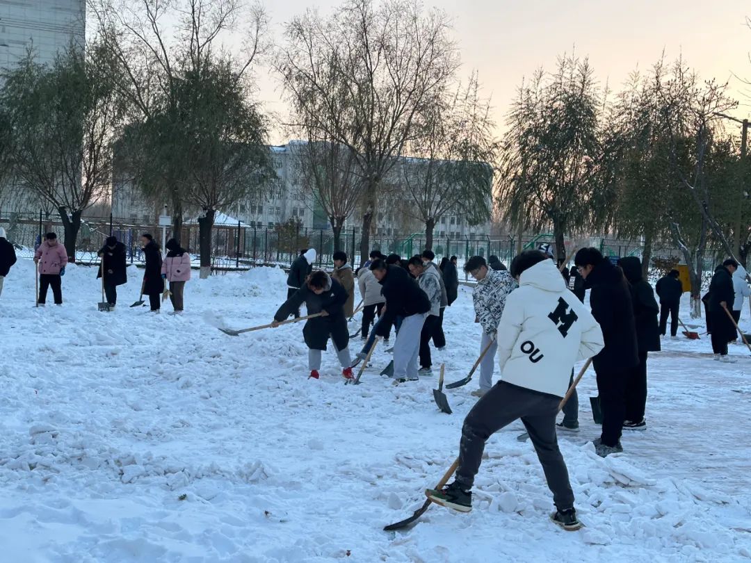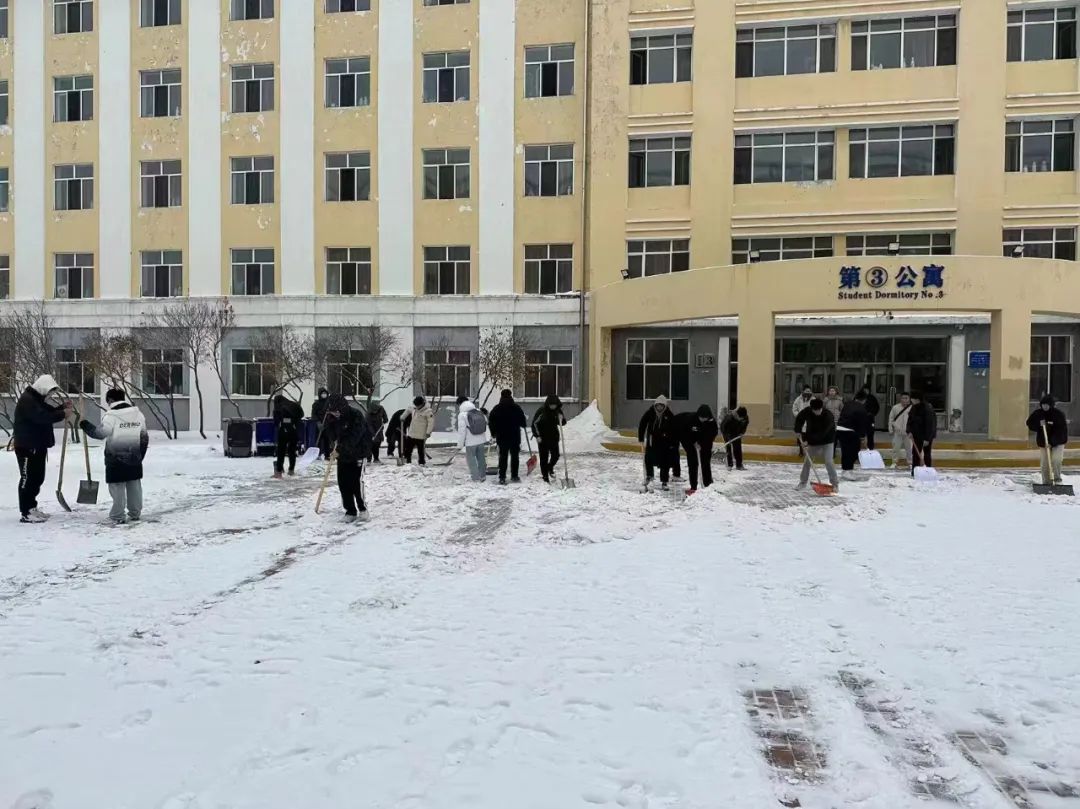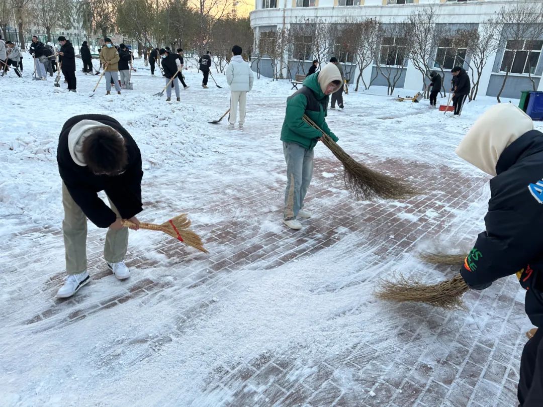 活动伊始,我院2023级同学于第三公寓楼集合。带着扫帚、笤帚、铁锹等铲雪工具,努力清除路面的积雪。大家不畏严寒,分工有序,配合默契,干劲十足,挥舞着除雪工具,虽然天气寒冷,却丝毫没有影响大家高涨的清雪热情。