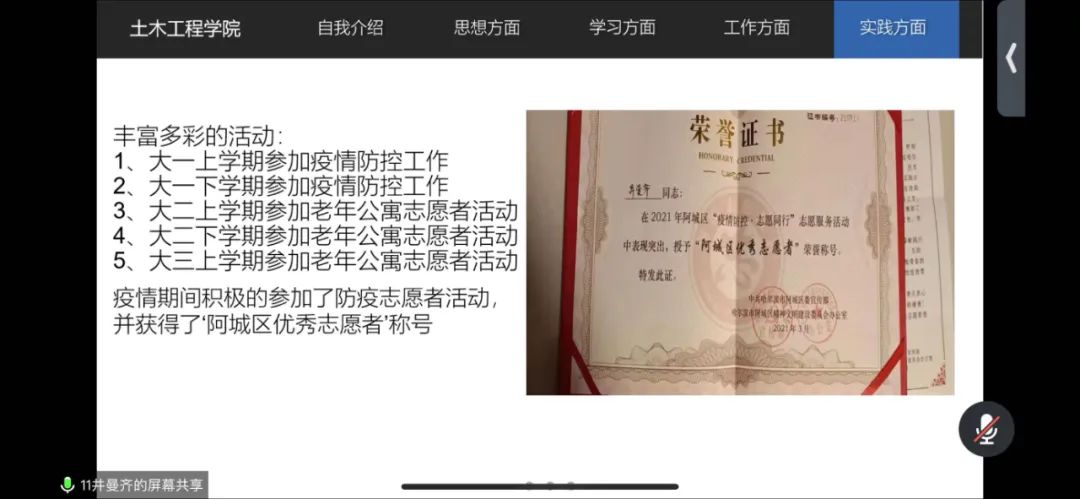 本次国家励志奖学金评审答辩,不仅是学生个人综合素质与能力的展示,也诠释了土木学子积极向上、奋力拼搏的精神风貌。更加营造了学习先进、争当先进的浓厚氛围,引导和激励更多的学子勤奋学习敢于创新,勇于实践,激励更多土木学子努力拼搏,刻苦奋斗,为土木工程学院再创辉煌。