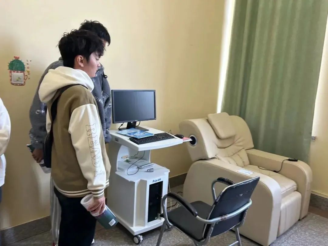 在中心专业教师王威老师的带领下,同学们依次体验了情绪宣泄室、音乐放松室、沙盘游戏室、团体辅导室等功能区。看着形式多样的先进专业设备,倾听经验丰富的专业心理健康老师的讲解,调动了同学们参与心理健康活动的积极性,同时为提高我院学生的心理健康基础提供了有效保障。通过参观活动,同学们既感受到了心理健康活动中心的专业水平,又舒缓了自己的内在压力。