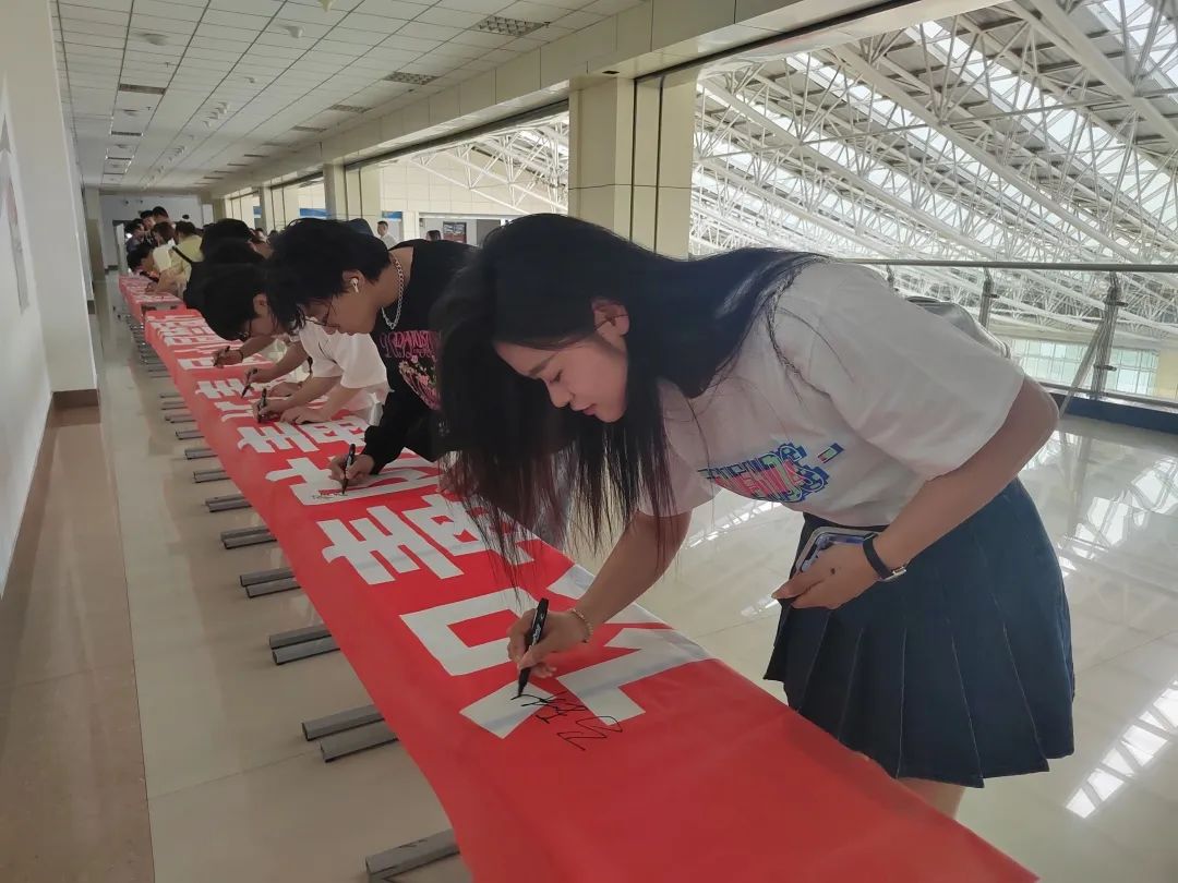 为更好地引导同学们正确认识艾滋病、毒品的危害,增强师生“远离毒品、预防艾滋”的意识,创设文明健康育人环境,营造良好的校园氛围。土木工程学院于6月7日中午在第一教学楼四楼开展“禁毒防艾”承诺签名活动。学院党总支书记宋旭、全体辅导员老师,以及各年级学生代表参加此次活动。