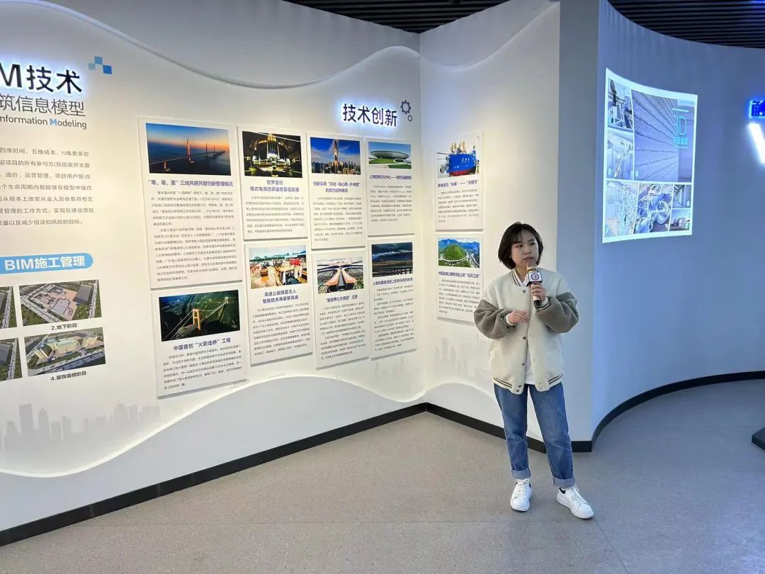 贾志强老师分别从文化展厅的几个板块给学生进行了讲解,首先是中国建筑,按照时间轴的顺序讲解中国建筑的起源半地穴式建筑到木结构建筑到高层建筑到场馆建筑等,通过时间轴讲解中国建筑的发展,增强学生的专业知识。之后是世界建筑,展示世界上比较著名典型性案例,了解世界建筑的发展变迁;接着是装配式建筑,通过装配式工厂展示,到装配式现场吊装,讲解装配式建筑建造过程。通过装配式案例让学生了解装配式建筑在中国的现状,装配式是建筑领域发展方向;四是安全文明工地,学生通过对安全标识学习到安全触电学习到安全文明工地布设.施工安全重于泰山,学生在学校对于施工现场细节的教学,也让学生有安全意识,之后的智能建造,以智能建造助力“中国建造”,智能建造在建造过程中充分利用智能技术,通过应用智能化系统提高建造过程智能化水平,达到安全建造的目的,提高建筑性价比和可靠性。我们通过对现有智能建筑机器人及现在建筑机械对比,展示智能建造中国现在的发展,之后又分别讲了BIM技术、智慧城市、海绵城市及穿越古今的道桥文化。