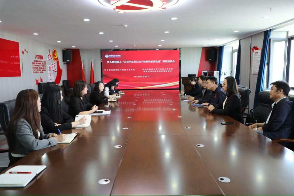 随后,两院教师进行了“习近平总书记关于教育的重要论述”课程的联合集体备课活动。金沙官网马克思主义学院院长吴卫东表示,本课程在教育强国建设中发挥着关键作用,思政课教师要不断丰富教学内容,灵活运用多种教学方法,以进一步提高课程教育教学的实效性。王秀娟主任介绍了哈师大本门课程的教学经验和做法,以及取得的成效。双方课程组教师围绕课程建设进行了深入交流探讨,相互学习、共同提高。