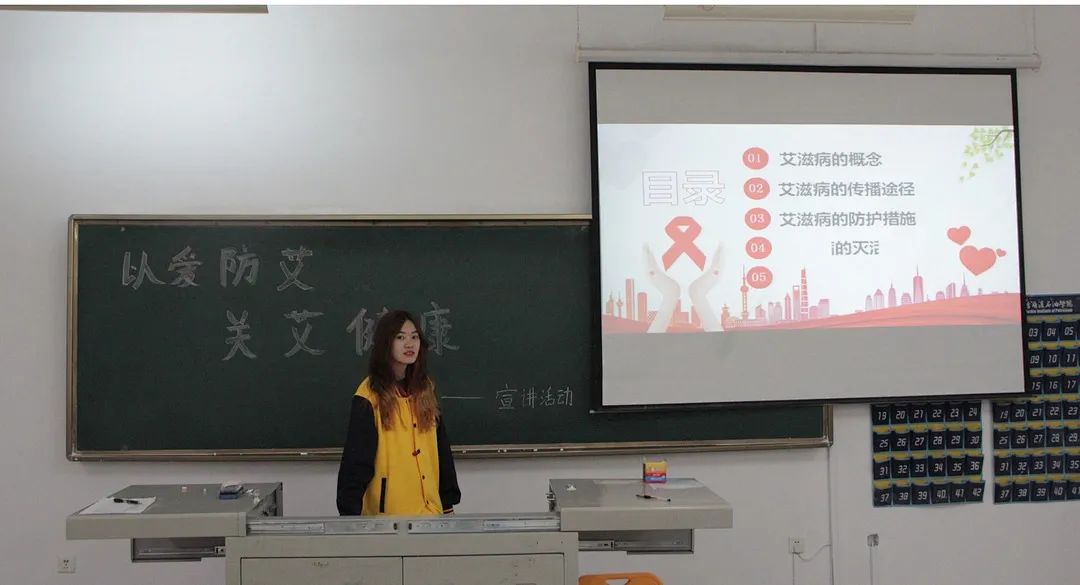 宣讲过程中,宣讲人首先对艾滋病的现状作了说明并向大家讲述了预防艾滋病的必要性,随后介绍了艾滋病的传播途径,帮助大家了解艾滋病相关知识,介绍预防艾滋病的策略及措施,同时也科普了艾滋病的临床表现、污染源等。使得同学们切实的了解到艾滋病的危害、防控的方法和意义。