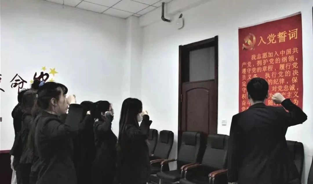 会后,学生党支部书记贾延迪,带领学生党员们重温了入党誓词。