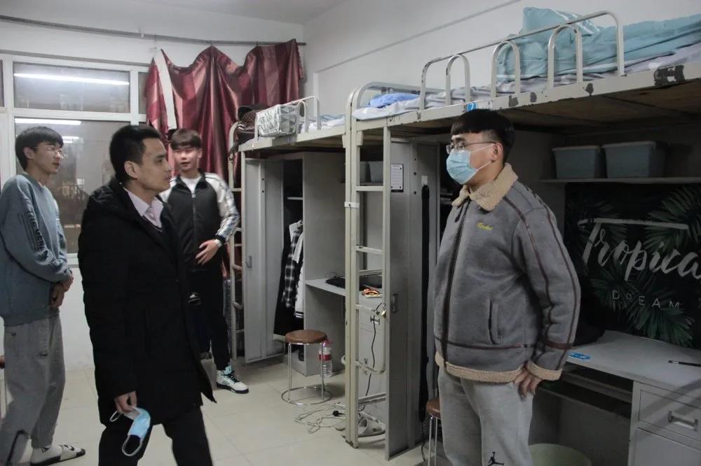 冬去春来万象新,精神饱满斗志昂。3月14日晚,党总支书记刘雁春代表领导班子深入公寓看望寒假返校的同学们。