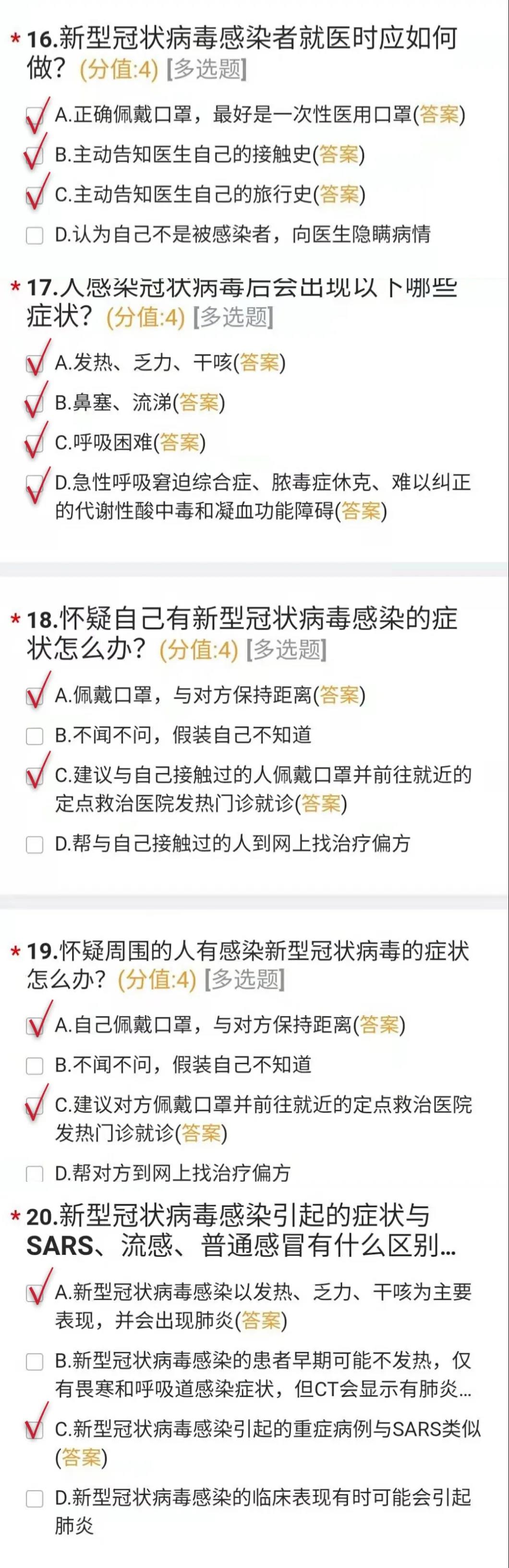 为切实增强学生们对新型冠状病毒肺炎的防护意识,提高日常预防新型冠状病毒肺炎的能力,响应防控号召,做好科学防控。石油工程学院于1月30日组织学生通过线上问卷答题形式开展疫情防控知识竞赛,我院各年级全体学生参加。