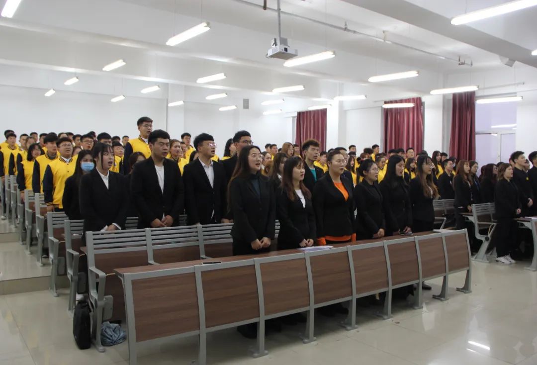 大会伊始,全体起立奏唱国歌,大会在激昂的国歌中拉开帷幕。随后,刘霄同学带领全体参会人员学习了全国学联27届全会精神。
