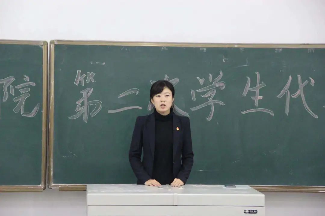 王昱老师宣读了由选举产生的新一届学生会主席团名单及学联委员名单,并对新一届学生会主席团及学联委员表示祝贺,她指出,学生联合会每一位成员都应当以身作则,紧跟时代要求,深化青年思想引领,要自觉把个人的理想追求融入学校发展与建设,秉承“博学求实,励志创新”校训精神,为我院学联工作贡献青春力量。