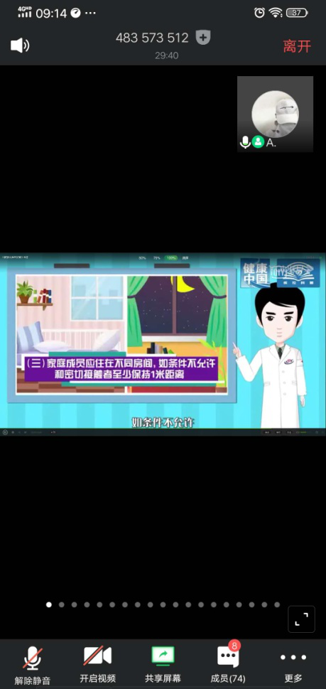 会上,刘鑫老师对近期学生的疫情防护工作做出总结。他表示:疫情面前没有旁观者,我们在保护自己以及家人的同时,在这场特殊的战斗中更应积极奉献出自己的力量,为抗击疫情贡献绵薄之力。同时我们也要兼顾学业,作为大学生的我们,虽未能走到前线去支援疫区,但面对疫情,我们也在行动;积极配合省教育厅的要求,坚持每日填报钉钉打卡,居家也记得按时消毒。