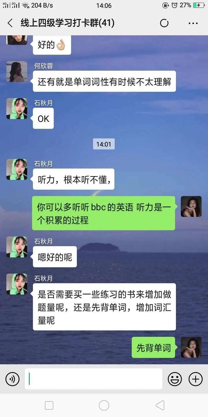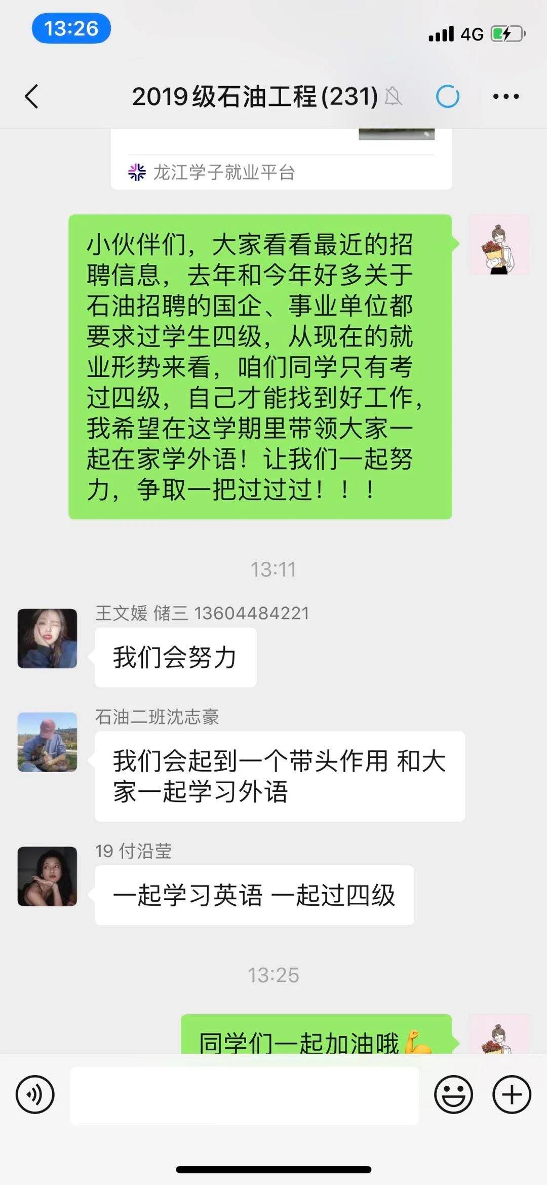 突如其来的疫情,改变了同学们的学习方式。石油工程学院不忘教育初心,牢记育人使命,为进一步加强学风建设,增强同学们的自律意识和自学能力,帮助同学们尽早树立信心,确立目标,积极备考英语四级,提高四级的通过率,将原有“四级班”的学习范围扩大至2019级全体同学,开展“英语四级每日练”线上打卡活动。
