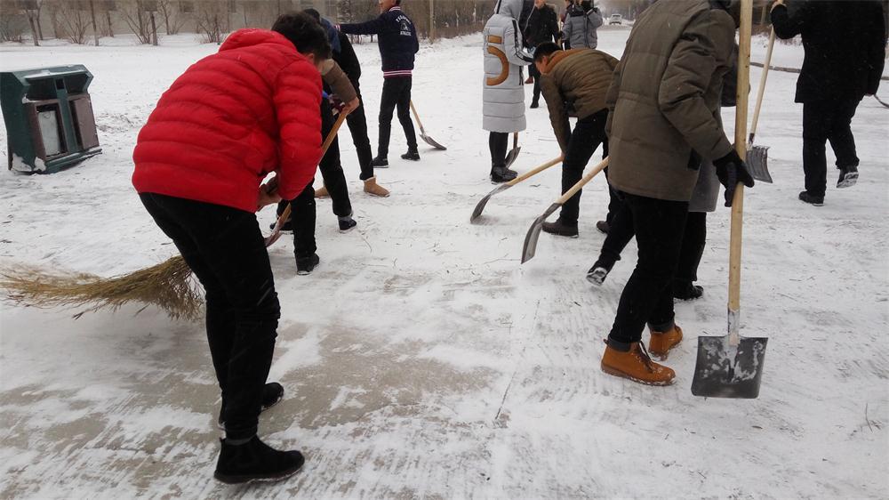 11月30日,纷纷扬扬的大雪弥漫了整个哈石油校园。为保障全校师生的出行安全,积极响应学校“以雪为令”的清雪号召。我院于30日下午1点30分,组织全体教师及学生党员对图书馆前的清雪分担区进行了彻底的清扫。