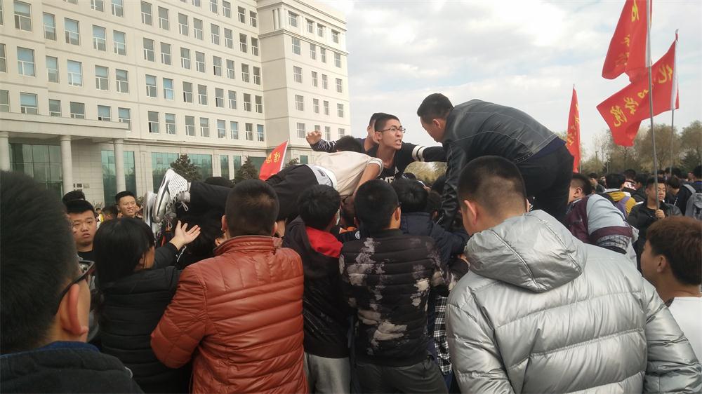 在第二项寸地放人比赛中,我院再次用行动展现了石油人团结一心,不惧挑战的风采。方寸大小的几块地砖上,在我院选手的精心计算下持续增加着人数。当方块站满后我院选手再次展现了他们的创新绝技“空中飞人”。通过助跑跳跃到方队的上方以叠罗汉的形式继续增加人数。在选手们的共同努力下,我院最终以55人的成绩赢得比赛。