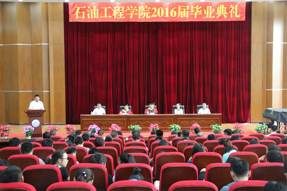 在热烈的掌声中,学校学位评定委员会成员、石油工程学院院长龙安厚教授致辞。他代表学院祝贺同学们顺利毕业!向长期以来帮助和关心毕业生们成长成才的父母、亲友和老师们,表达最衷心的感谢!