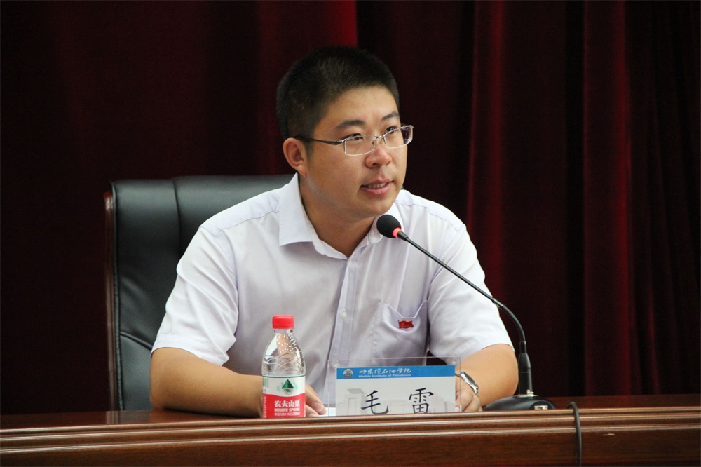 他说,在过去的一千多个日日夜夜,学校的一花一草一木,一楼一堂一馆,无不见证着你们的欢笑与泪水,珍藏着你们的眷恋和“乡愁”。即将毕业,你们依然是“小鲜肉”,但却多了一份成熟和历练;你们依然是一副行囊、一张车票,但却满载了知识的财富和自信的张扬;你们依然是那个“张三李四王五”,但你们的名字、你们的足迹已经永远载入“哈石油”史册、定格成美丽的“哈石油”画卷!