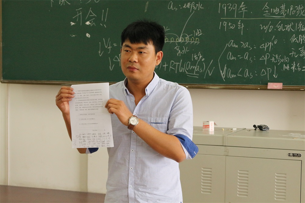 6月11日下午3点,石油工程系党总支书记毛雷召集全系学生党员、学生会干部、班委主要成员召开会议,再次强调了有关规定,并要求全体学生党员、学生干部,挂牌参加本次考试,为同学们起到表率和带头作用,并提醒同学们要带好相应证件和考试用具,避免因疏忽大意影响考试。