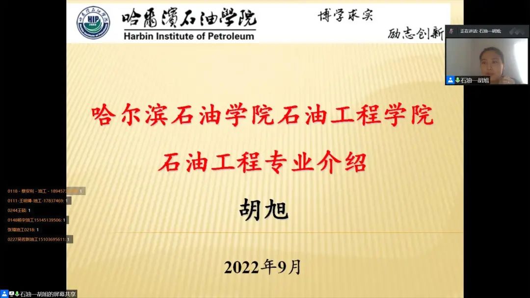 为帮助2022级新同学更好的融入大学生活,培养专业情志,实现自我价值。9月5日,我院在线上开展专业情志教育讲座。本次讲座由我院油气储运工程系主任于子丰、石油工程系主任胡旭、实验室主任刘鑫、油气储运工程系教师叶雪和油气储运工程系教师李井洋主讲,全体2022级学生参会。