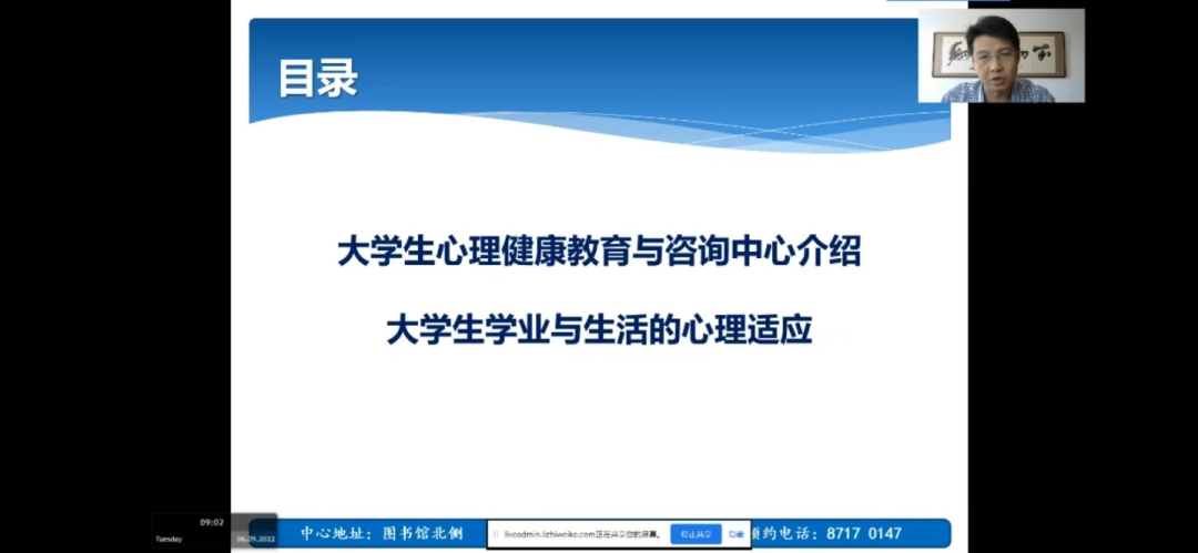 为进一步提高大学生的心理素质,促进大学生的身心健康和谐,宣传普及心理健康知识,提高校园心理危机的预防,保障同学们的身心健康,9月6日,我院开展心理健康讲座,此次讲座由大学生心理健康教育咨询中心教师赵全宇主讲,全体2022级新生参加。