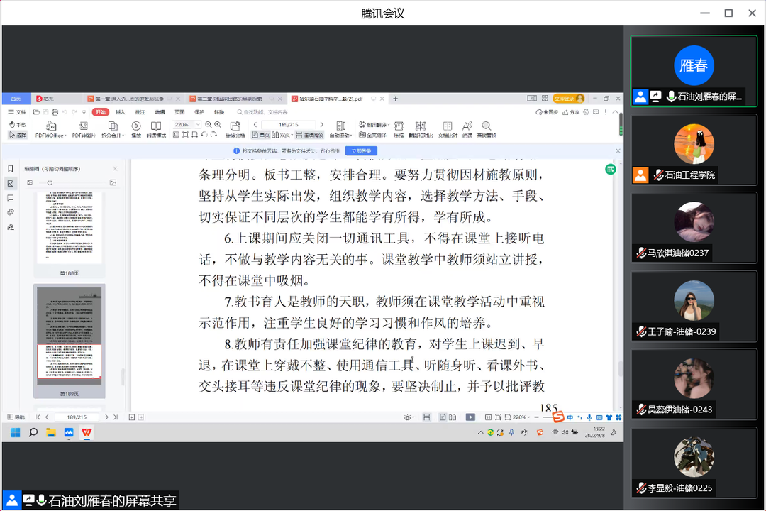 为加强2022级新生科学道德及学风建设,树立学生正确的诚信意识,助力大学生树立道德规范,提高其科学道德素养,形成风清气正、求真务实的优良学风,营造有利于自主创新和人才成长的学习环境。9月8日,我院在腾讯会议线上召开学风建设教育大会,学院党总支书记&2022级新生辅导员刘雁春书记主讲,全体2022级学生参会。会议由2022级新生辅导员教师(助理)尹航主持。