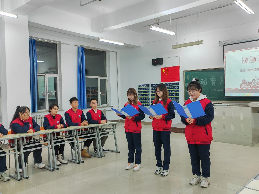 活动伊始,各团支部以班级为单位,全体同学齐唱国歌,表达对祖国的敬爱。通过歌曲、朗诵、相声、小品等一系列节目,带领大家进一步了解劳动育人的意义和重要性,最后以团歌收尾,同学们纷纷表示,劳动不仅可以锻炼我们的身体,更能通过成就感的实现而提升我们的幸福感和自信心,让我们知道劳动之苦,知道去尊重他人的劳动成果。