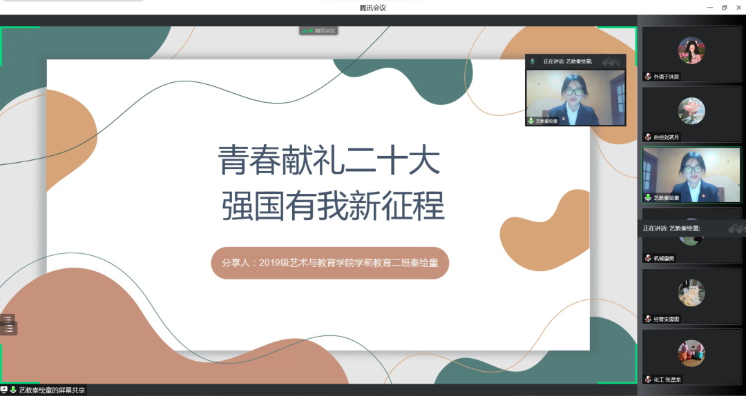 本次宣讲会特邀2019级自动控制工程学院的刘茗月同学,2020级外国语学院于沐辰同学,2019级机械工程学院慧樊同学,2019级艺术与教育学院秦绘童同学,2019级经济与管理学院朱雯雯同学,2019级化学工程学院张淏龙同学进行宣讲,他们六位优秀代表在本次讲座中以自身经历为例,讲述了自己大学生涯中在学业、竞赛、社会实践等方面的方法和心得。