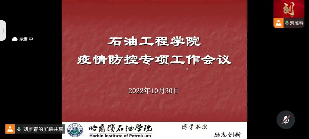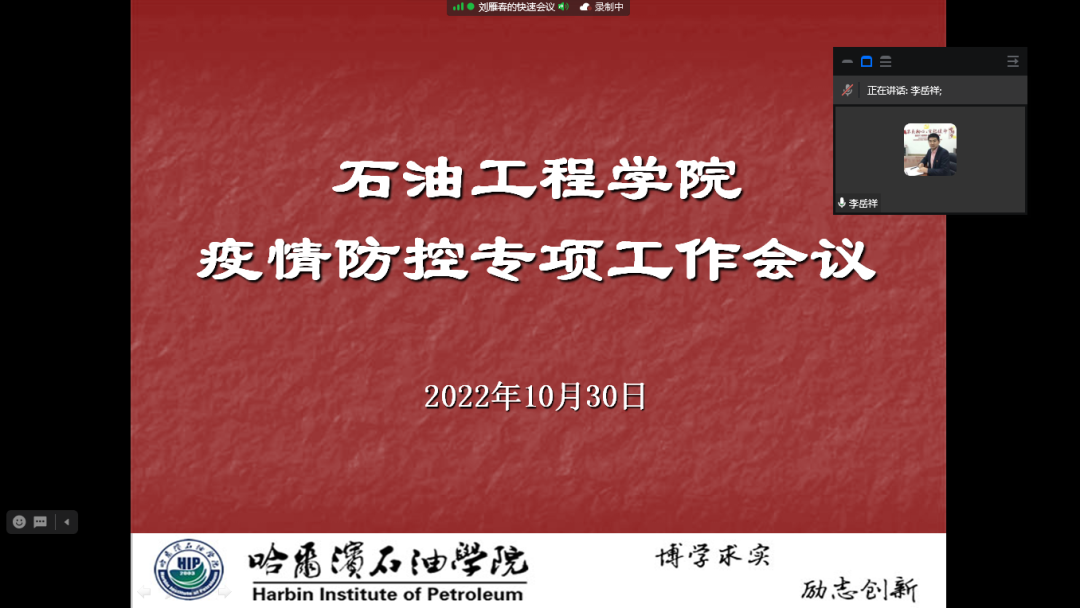 会议伊始,刘书记在会议上传达了柴维斯校长、林立民书记对金沙官网疫情防控工作的重要指示精神,对于当前我院的具体防控要求做了进一步要求,希望在当前我省及哈市疫情防控形势前提下,克服麻痹心理、厌战情绪、松劲心态。同时,也进一步要求学生们在校园内一定要佩戴好口罩,减少聚集;杜绝与校外的非必要接触;做好个人防护,加强疫情防控工作的各项措施保证身体健康。