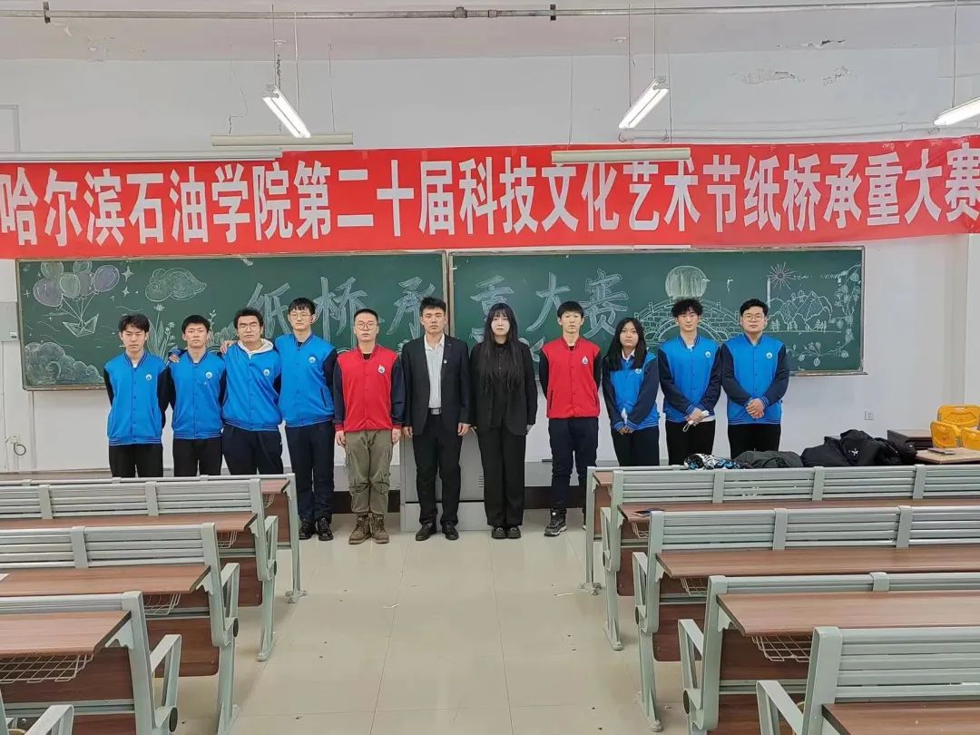 为深入学习宣传贯彻党的二十大精神,推进文化自信自强,加强新时代校园文化建设,培养当代大学生实践和创新意识,营造活跃、浓郁的科学和人文精神氛围。11月26日中午12:00,我院在主教701教室承办以“轻巧薄纸,梦想桥梁”为主题的第二十届科技文化艺术节纸桥承重设计大赛。本次大赛由校团委主办,全校九个二级学院派队参赛。我院党总支书记刘雁春,党总支副书记张雪,学生党支部书记&2021级辅导员王娜,2019级辅导员郭海明,2022级辅导员尹航及各院学生会主席出席本次活动。
