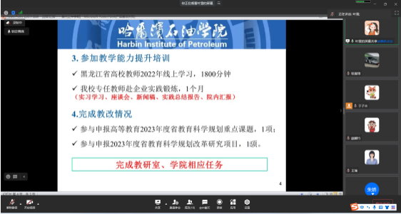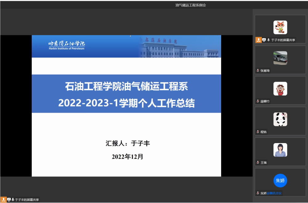 时光飞逝,转眼间期末悄然而至,在本学期的工作即将接近尾声之时,为进一步提高教学质量,加强教学管理,创造良好教育氛围,油气储运工程系于2022年12月13日上午8:20在线上召开了期末工作总结大会,副院长朱砂及油气储运工程系全体教师参会,会议由于子丰主任主持。