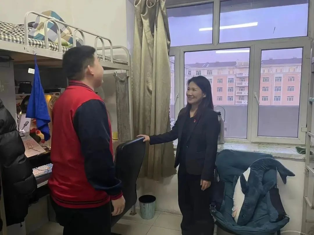 刘书记在走访过程中,对同学们的返校情况进行了详细了解,与同学们进行了亲切的交流。他表示,新学期,新气象,希望同学们用充足的时间,丰富自己的知识与各项能力,在新一学期里使自己更加进步,并叮嘱同学们要自觉遵守学校规章制度,保持宿舍卫生,杜绝违规使用电器,严防火灾和人身意外事故的发生,有问题要及时反馈。同时,各年级辅导员老师提醒同学们要增强防诈意识,注意个人财产安全,防护人身利益损失,也要重视用水用电等安全问题,并询问同学们开学的感受,鼓励同学们要以更加饱满的心态去面对新学期的学习和生活。