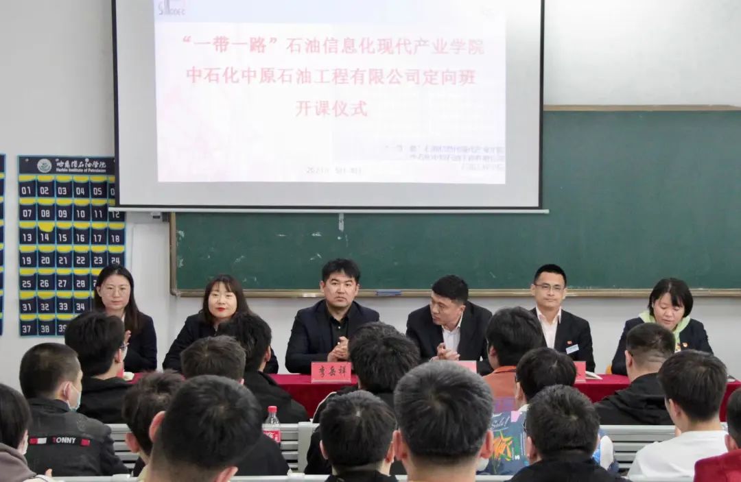 为加强校企合作,培养具备职业素质及技能专精的应用型人才,充分实现高质量就业。5月8日17:00,金沙检测线路js69石油工程学院与中石化中原石油工程有限公司钻井二公司共建“一带一路”石油信息化现代产业学院定向班开班仪式在主教学楼701召开,校党委副书记&副校长冯研、石油工程学院院长李岳祥、党总支书记刘雁春、副院长朱砂、教学秘书赵昕、党总支副书记&中原定向班班主任张雪,以及定向班全体学生参加本次开班仪式,仪式由党总支副书记张雪主持。