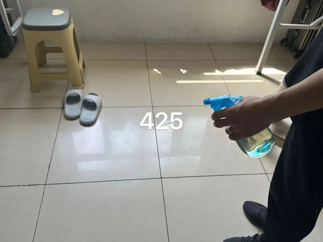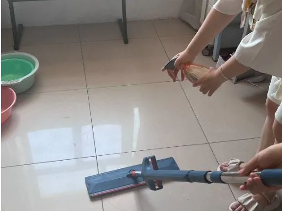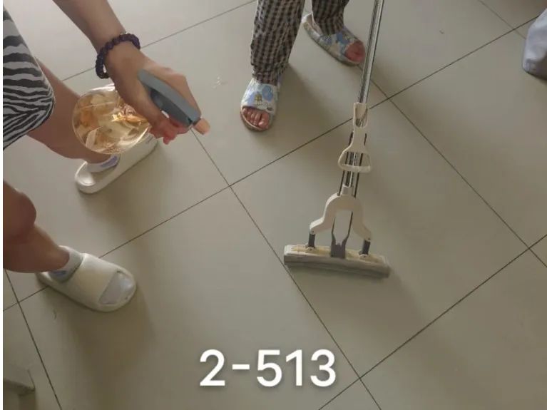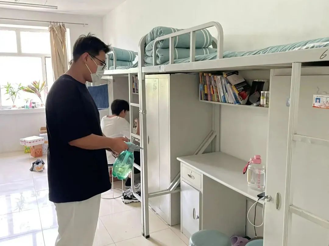消杀过程中,志愿者对每一间寝室逐一开门、开窗通风,对地面、卫生死角喷洒消毒液,仔细对每一处卫生死角清洁消毒,努力做到消毒全面,以消除病菌。