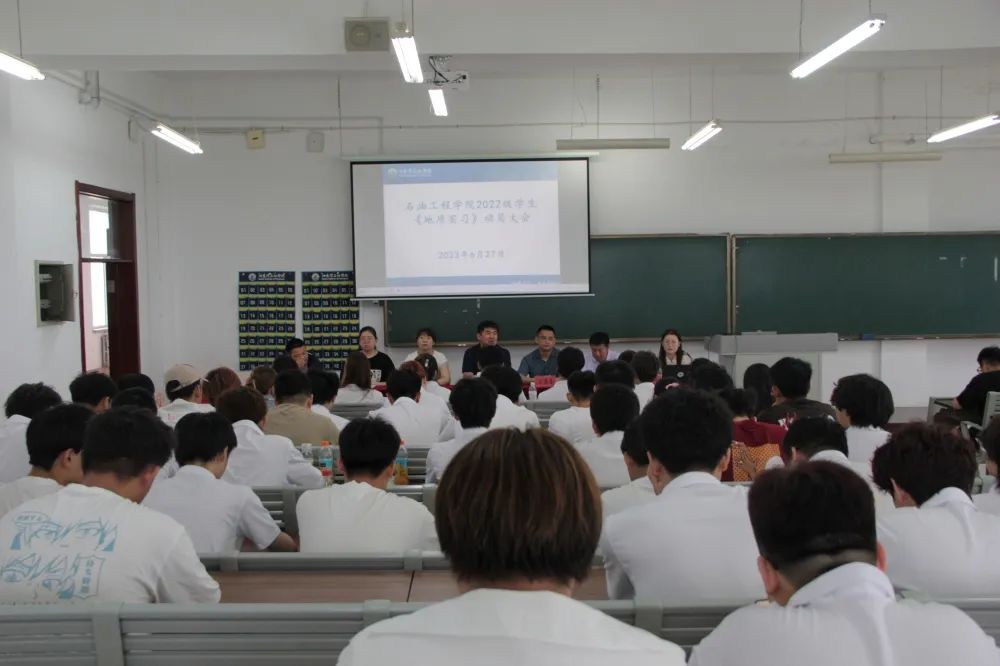 为确保石油工程专业2022级地质实习工作顺利展开。6月27日上午10:30,石油工程学院地质实习动员大会在主教701召开。石油工程学院院长李岳祥、党总支书记刘雁春、副院长朱砂、办公室主任赵昕、实习带队教师刘鑫、夏长元、孙博宇及2022级石油工程专业同学参加,会议由办公室主任赵昕主持。