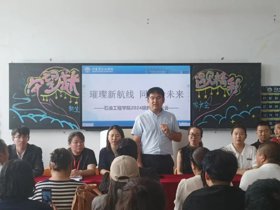 会议伊始,院长李岳祥代表石油工程学院对2024级新生家长的到来表示热烈欢迎,衷心感谢家长和同学们对学院的认可和信任。院长向家长们分享了学院在学科建设、人才培养、社会实践等方面取得的丰硕成果,并且详细介绍了学院的办学理念。表示希望通过与家长的沟通,达成家校共育的效果,从而为新生提供成长的良好环境。