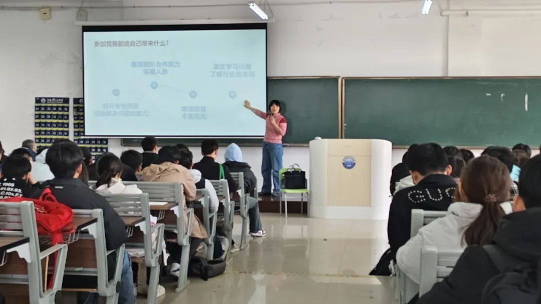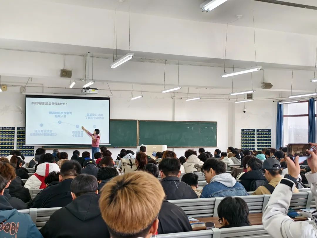 在讲解过程中,同学们全神贯注地聆听,不时拿起笔记录下关键信息。讲座还设置了互动环节,同学们积极提问,与老师共同探讨竞赛的相关问题。老师耐心地解答了同学们的疑惑,并给予了宝贵的建议。