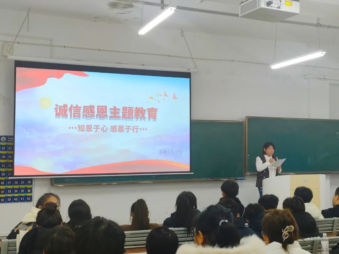 为进一步增强我院学子的诚信意识和责任担当,塑造学生良好的信用品质,营造诚实守信、心怀感恩的校园文化氛围,12月5日,石油工程学院开展“知恩于心,感恩于行”诚信感恩主题教育大会,学院党总支书记孙晓萍出席此次会议,学院全体受资助的同学参加。大会由我院党总支副书记张雪主持。