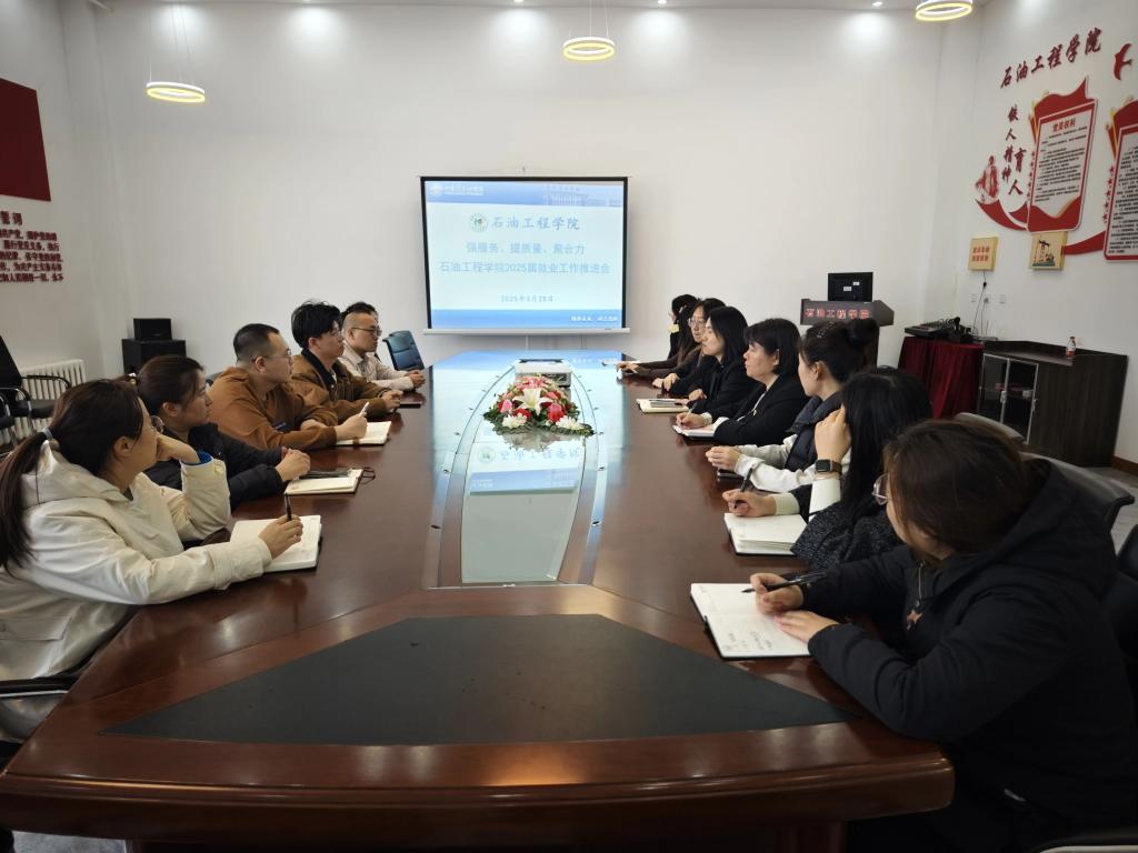 为深入贯彻落实学校关于毕业生就业工作的部署要求,有效推进2025届毕业生充分就业,强化就业服务保障和学生安全保障,石油工程学院于3月25日召开了2025届毕业生就业工作推进会。学院党总支书记孙晓萍、副院长朱砂、党总支副书记张雪以及全体专业教师和辅导员参加会议,会议由张雪主持。