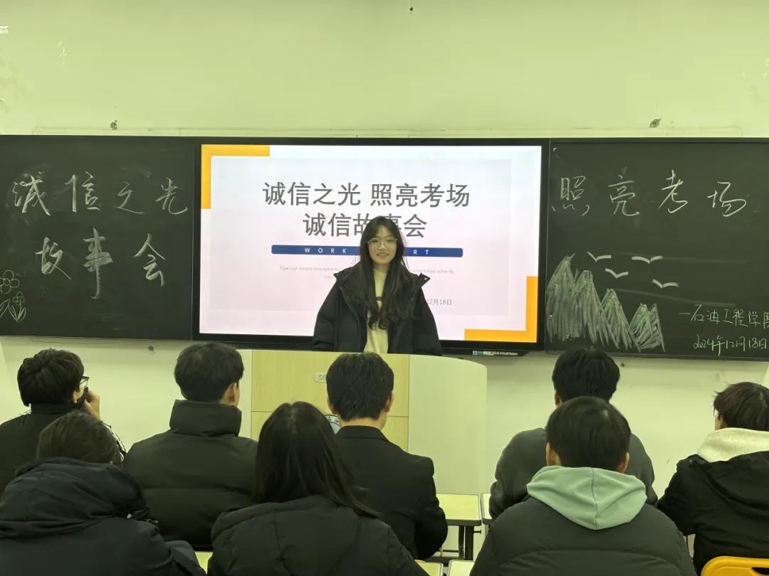 为了确保期末考试的顺利进行,同时弘扬诚信美德,强化学生的诚信意识。石油工程学院于2024年12月18日在主教610教室开展“诚信之光,照亮考场”主题诚信故事会活动。