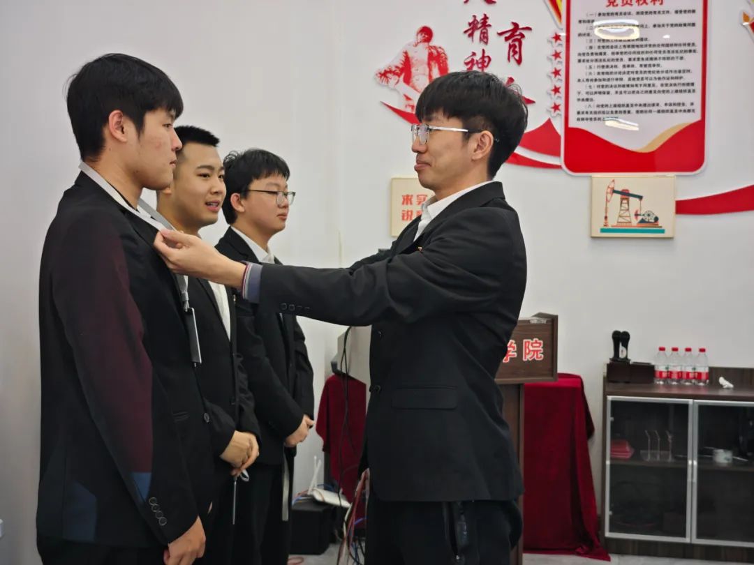 会议伊始,由各张书记和各级辅导员为学生党员干部佩戴“诚信考试”标牌。标牌上不仅有他们的个人信息,还醒目地印着“诚信考试,从我做起”的字样,这既是一份荣誉,更是一种鞭策,让他们时刻明确自己的身份,以身作则,用实际行动坚决抵制考试作弊、维护考试公平公正。