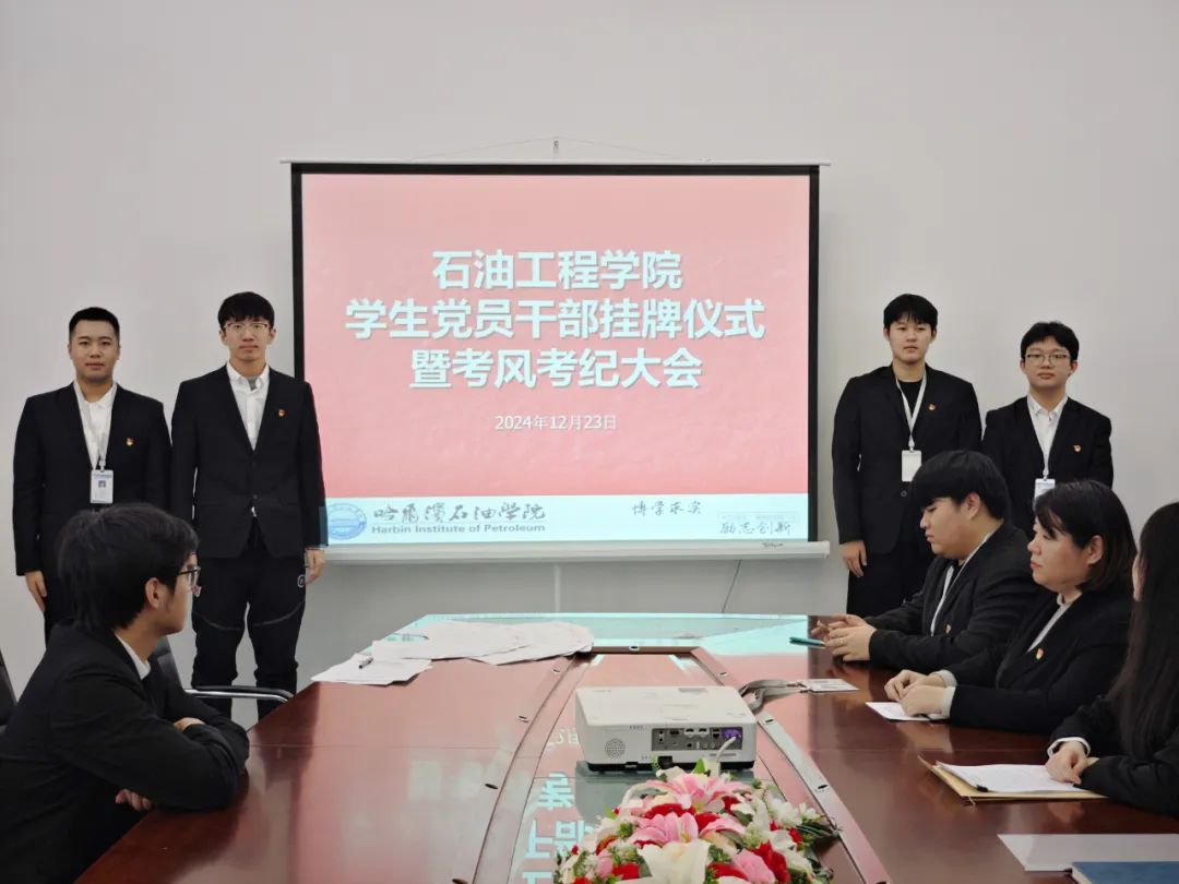 为进一步加强学院学风建设,营造诚信考试氛围,12月23日,石油工程学院开展学生党员干部挂牌仪式暨考风考纪大会。我院党总支副书记张雪、各年级辅导员出席会议,全体学生党员干部参加。学院党总支副书记张雪主持会议。