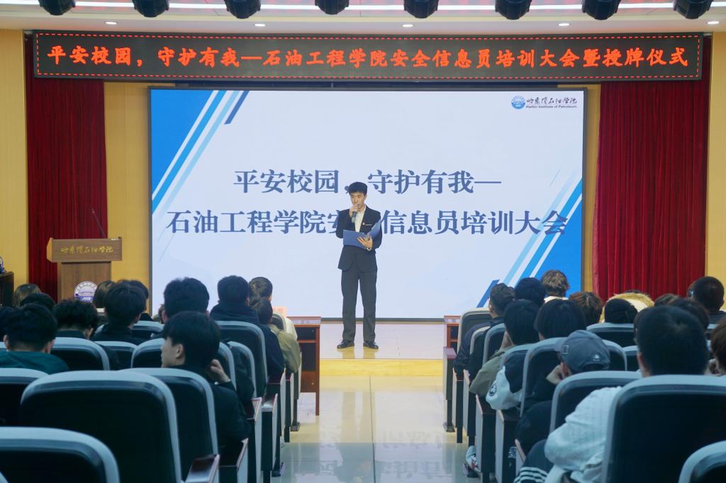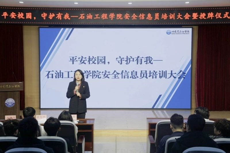 为切实强化校园安全管理,全面提升同学们的安全防范意识,3月24日,石油工程学院在第一教学楼518隆重举行了“平安校园,守护有我”安全信息员培训大会暨授牌仪式。学院党总支书记孙晓萍、党总支副书记张雪以及各年级辅导员出席活动。