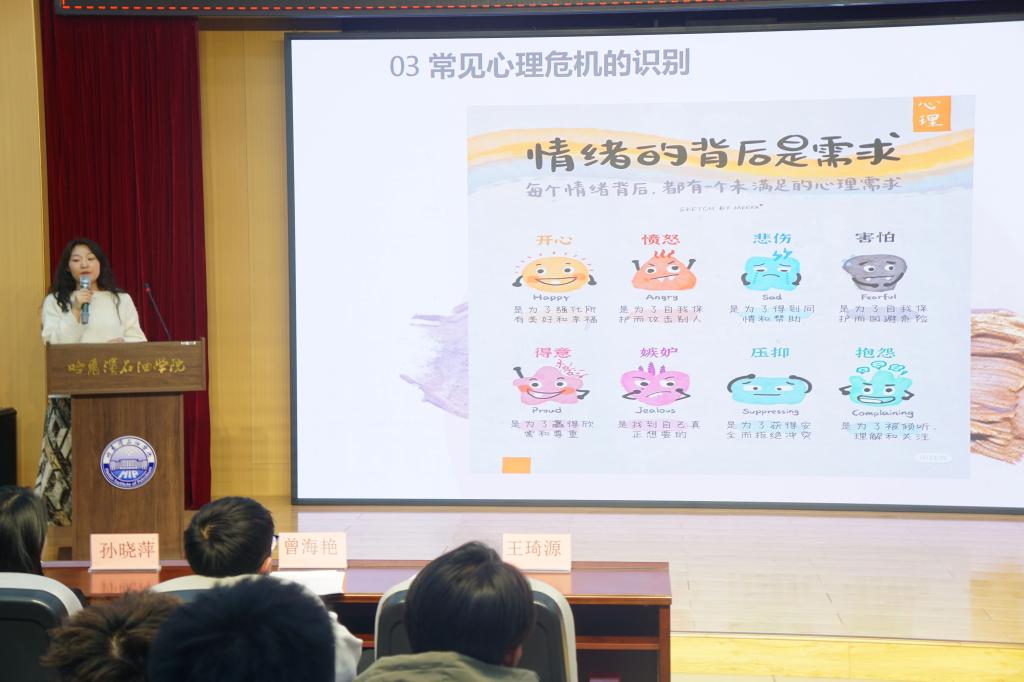 随后,2023级辅导员曾海艳聚焦宿舍心理联络员培训这一主题,进行了深入而透彻的讲解。她精准地明确了心理联络员的角色定位,指出他们是宿舍心理健康的守护者和护航者,肩负着及时发现、报告并妥善解决同学们心理问题的重要使命。曾老师详细列举了心理联络员应具备的优秀品质,如高度的责任心、真挚的同情心以及良好的沟通能力等。她着重强调,心理联络员要像敏锐的观察者一样,密切关注同学们的情绪变化,第一时间发现潜在的危机迹象,并迅速采取有效的干预措施,全力保障同学们的心理健康。