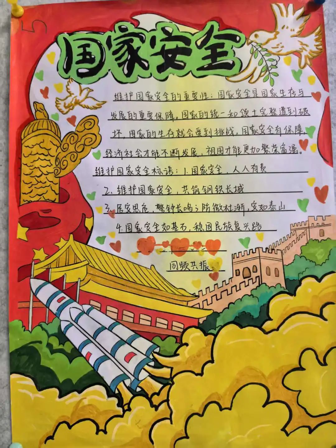活动期间,同学们通过查阅资料,全方位多角度地了解国家安全,他们精心构思设计,以丰富的色彩,生动的文字,精美的绘画和独特的创意,创作出一批主题鲜明、创意新颖的优秀作品,展现了他们对国家安全的深刻理解。